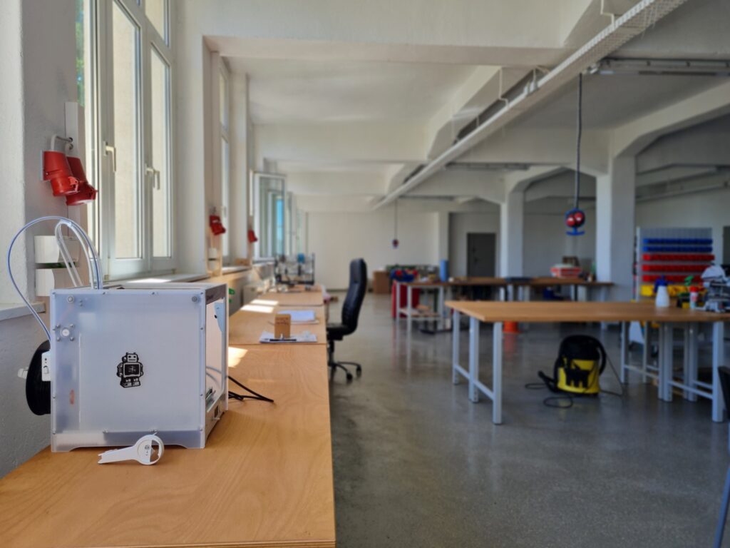 Noch riecht es nach der neuen Bodenfarbe und es fehlen die Regale, Arbeitstische und Werkzeug. Bald wird eingeräumt.